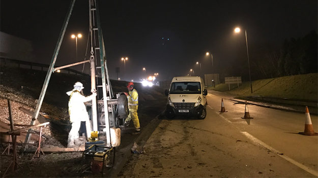 D&I Drilling were commissioned to carry out overnight drilling to minimise impact to the local road network and avoiding direct drilling on the M62.