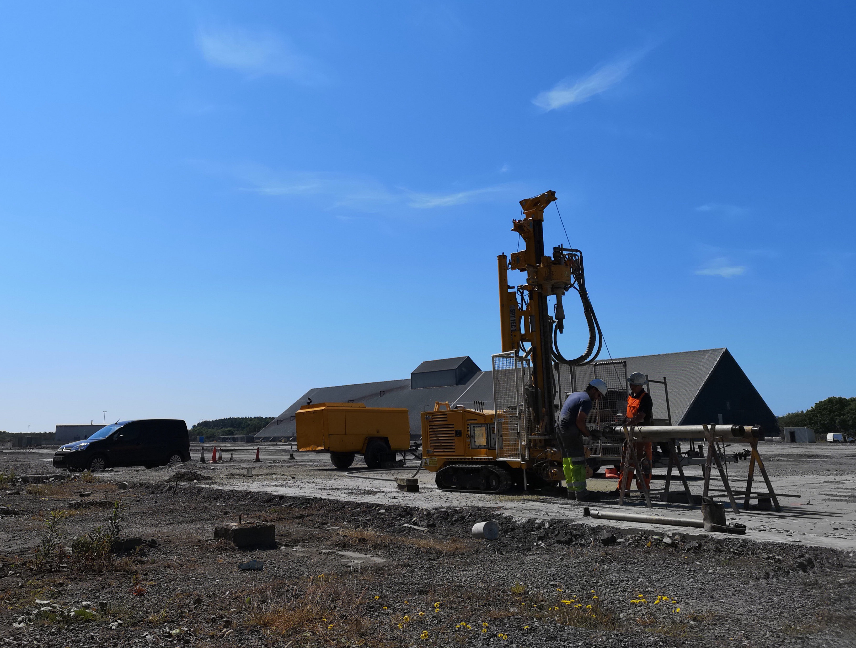 Rotary rigs can be used for sites that require deep drilling (>30mbgl), such as mining investigations or where there is a requirement for cores. Drilling can be open hole for fast drilling, to deep strata or cored, to provide solid samples to allow assessment of bedrock for geotechnical properties. Drilling can be air or water flushed, depending upon the type of investigation and the water source.